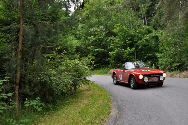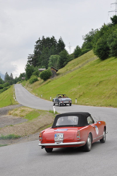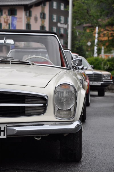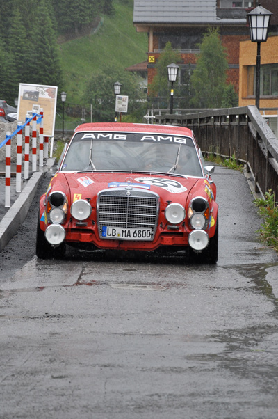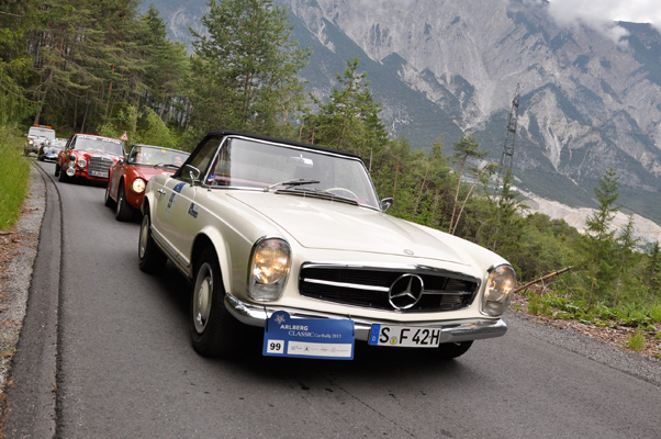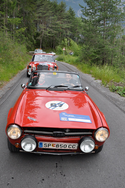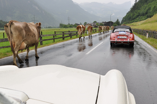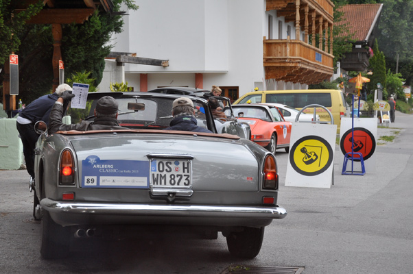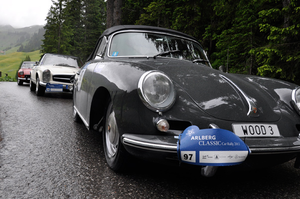 Um diese Jahreszeit ist in Lech noch nicht besonders viel los. Das durchwachsene Wetter tut ein Übriges. Nur einige Wanderer streifen durch die Wiesen, Kühe fressen das saftige Gras und, ja und jede Menge Oldtimer röhren umher. 118 Teilnehmerfahrzeuge haben sich zur Arlberg Classic Car Rally eingefunden, um 535km der schönsten alpinen Bergstraßen im Umkreis zu erfahren, Wertungsprüfungen zu absolvieren und am Abend gesellig beisammenzusitzen und von den Abenteuern des Tages zu erzählen. Das Motto: Mit Freunden durch alpine Traumkulissen!
